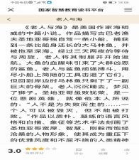 2、全文以一种悲壮的主旋律,讲述孤身出海捕鱼的老人与命运抗衡的辛酸经历。老人与船只飘荡起伏在荒无人烟的大海上,三天三夜的饥渴、僵硬、寂寞、对峙,老人忍受着心灵和身体的双重折磨,即便他的手因抽筋的麻木痛楚而难以操作,但他不肯低下不屈的头颅,不肯放下手中的刺刀,毅然而然的转身刺向鲨鱼,这样的庞然大物更是划破命运的天际线,拨开厚密的云雾,让阳光进行倾泻下来。可是,当他拖着疲惫的身子回到那个熟悉的小巷时,船侧上残留的仅仅是一副鱼骨架。是的,他一无所获,八十四天漂泊的经历让他深陷泥潭,耗尽所有精力,但他却满载而归。从未见过鲨鱼尾巴的游客惊叹不已,而他们不知道的是,正是老人的坚韧顽强成就了眼前的一切。“寄浮游于天地,渺沧海之一栗。”人在自然面前是如此的渺小无知,千磨万击还坚韧,任尔东西南北风,人性的光辉又是如此的让人震撼。