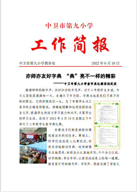 亦师亦友好字典 “典”亮不一样的精彩 ——中卫市第九小学查字典比赛活动纪实