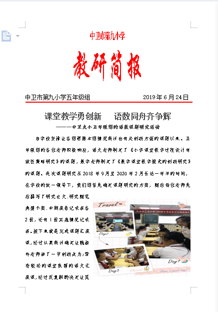 课堂教学勇创新 语数同舟齐争辉 ———中卫九小五年级组的语数课题研究活动