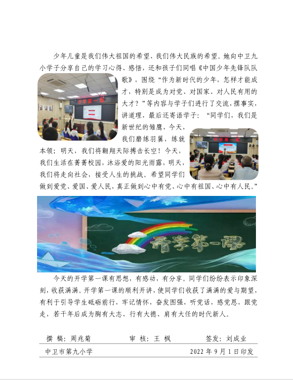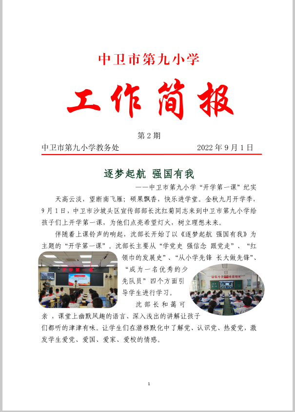 逐梦起航 强国有我 ——中卫市第九小学“开学第一课”纪实