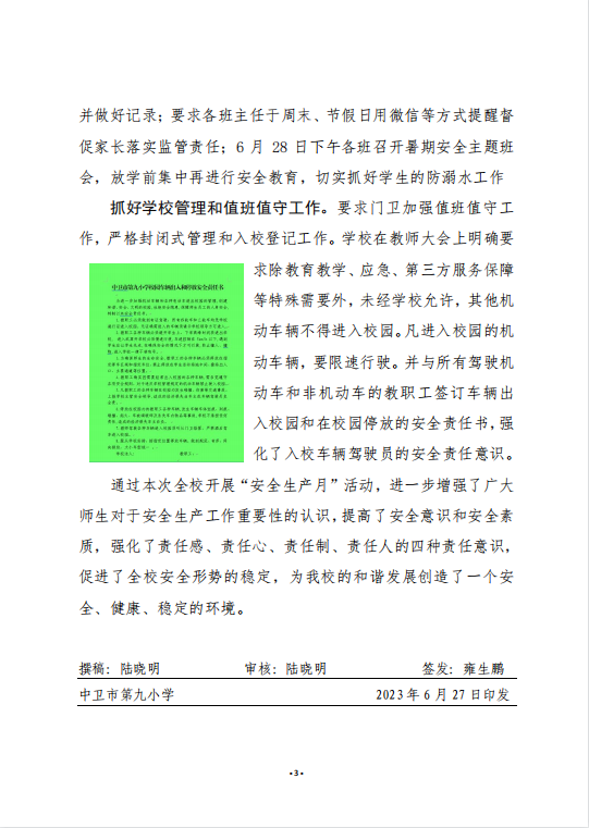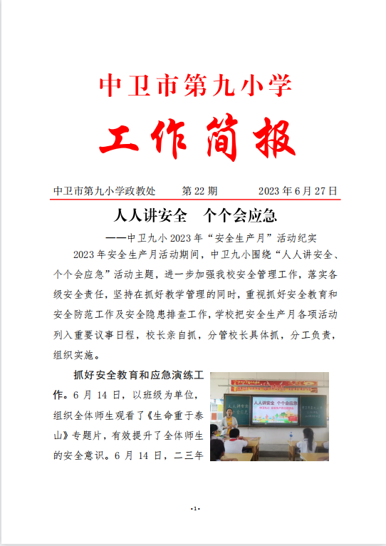 人人讲安全个个会应急 ——中卫九小 2023 年“安全生产月”活动纪实