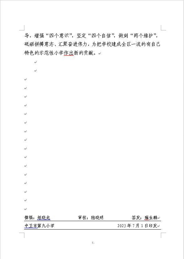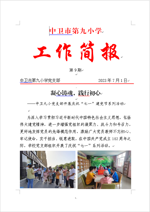 发布时间:2023-07-01 10:05 栏目:党建动态 发布单位:中卫市第九小学 点击量:5340 【公开】