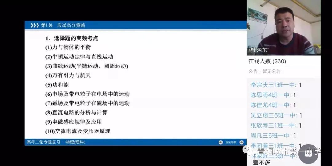 从2月3日起,你们已经投入到了紧张的“停课不停学”的一轮复习任务中,线上进行听课答疑。除此之外,一定要及时的查漏补缺,并且适当适时加强心理素质训练,更要有适合自己的学习规划和合理的时间安排。