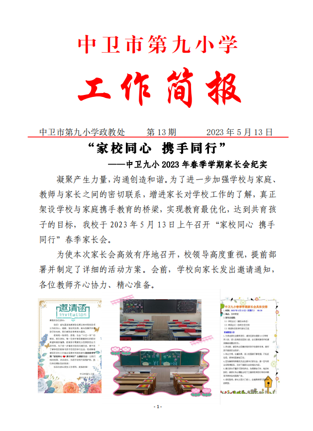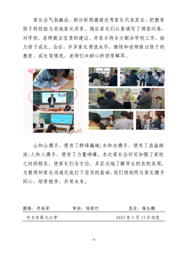 中卫九小2023年春季学期家长会纪实