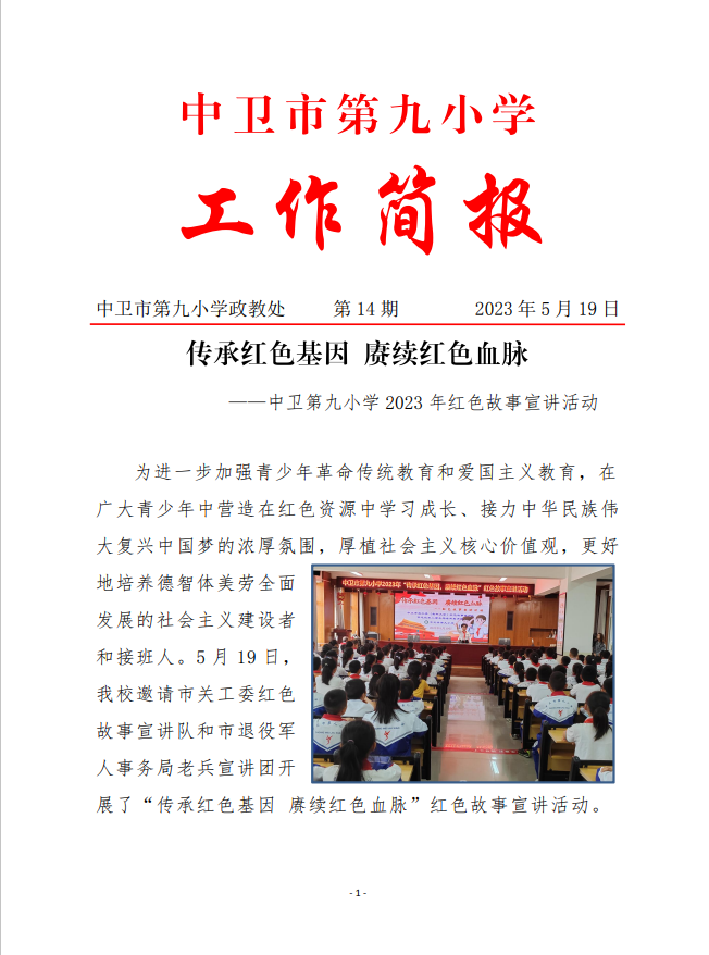 发布时间:2023-05-19 18:16 栏目:政教工作 发布单位:中卫九小 点击量:3003 【公开】
