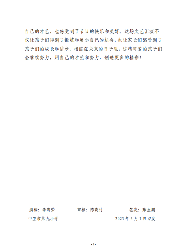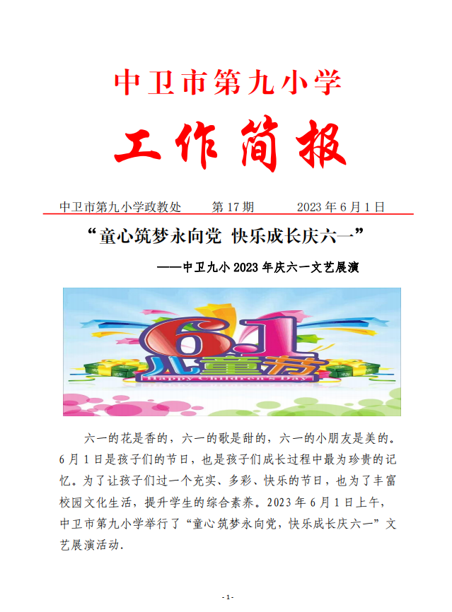 发布时间:2023-06-02 16:27 栏目:政教工作 发布单位:中卫市第九小学 点击量:1325 【公开】