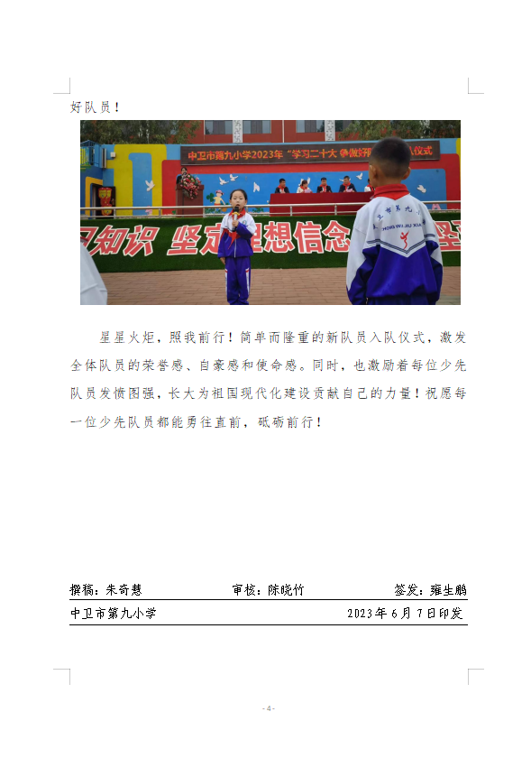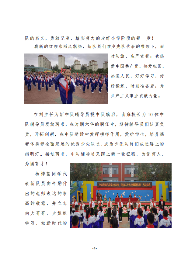 中卫九小2023年新队员入队仪式