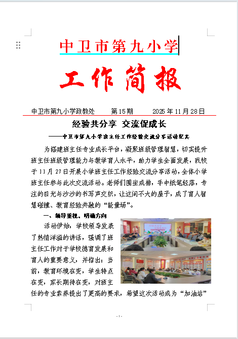 中卫市第九小学班主任工作经验交流分享活动纪实