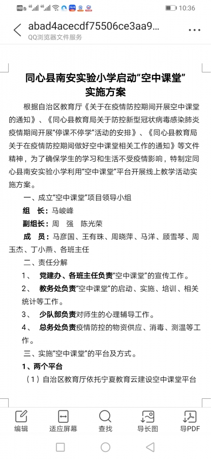 根据自治区教育厅《关于在疫情防控期间开展空中课堂的通知》、《同心县教育局关于防控新型冠状病毒感染肺炎疫情期间开展“停课不停学”活动的安排》、《同心县教育局关于在疫情防控期间做好空中课堂相关工作的通知》等文件精神,为了确保学生的学习不受疫情影响,南安实验小学开展“空中课堂”在线学习,现已完成下列工作: