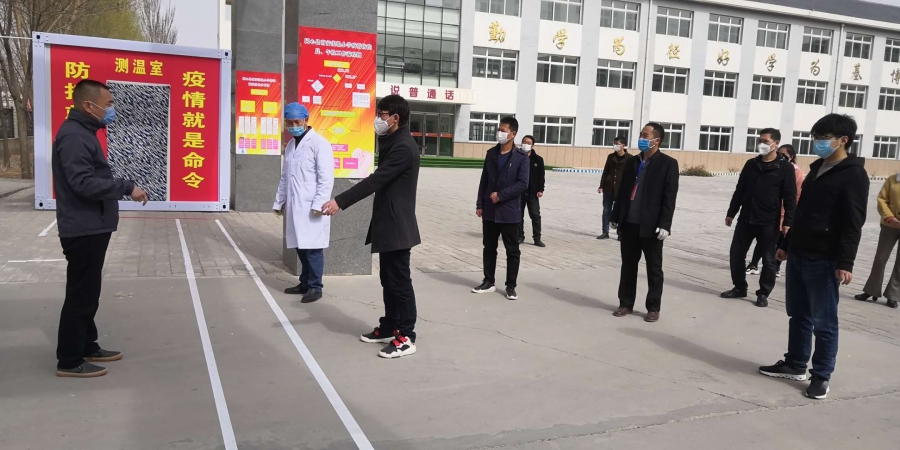 演练内容之一是学校晨检中发现一名学生发烧、咳嗽、呼吸困难等症状,疑似新冠肺炎感染,学校应急处置小组马上启动应急预案,并及时进行上报、隔离、消毒、停课等应急处置工作的演练。