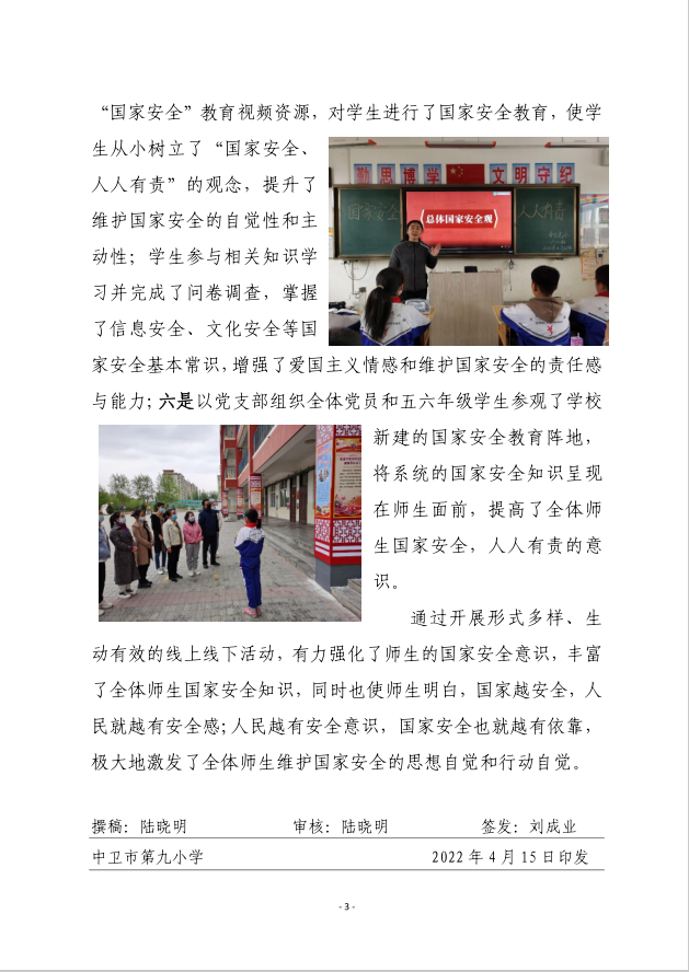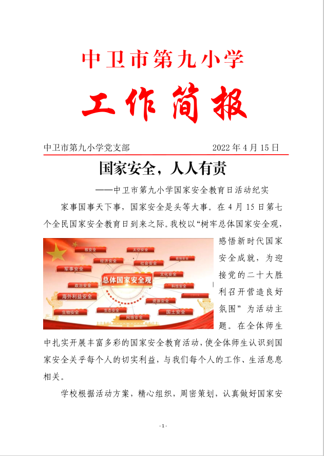 国家安全,人人有责 ——中卫市第九小学国家安全教育日活动纪实